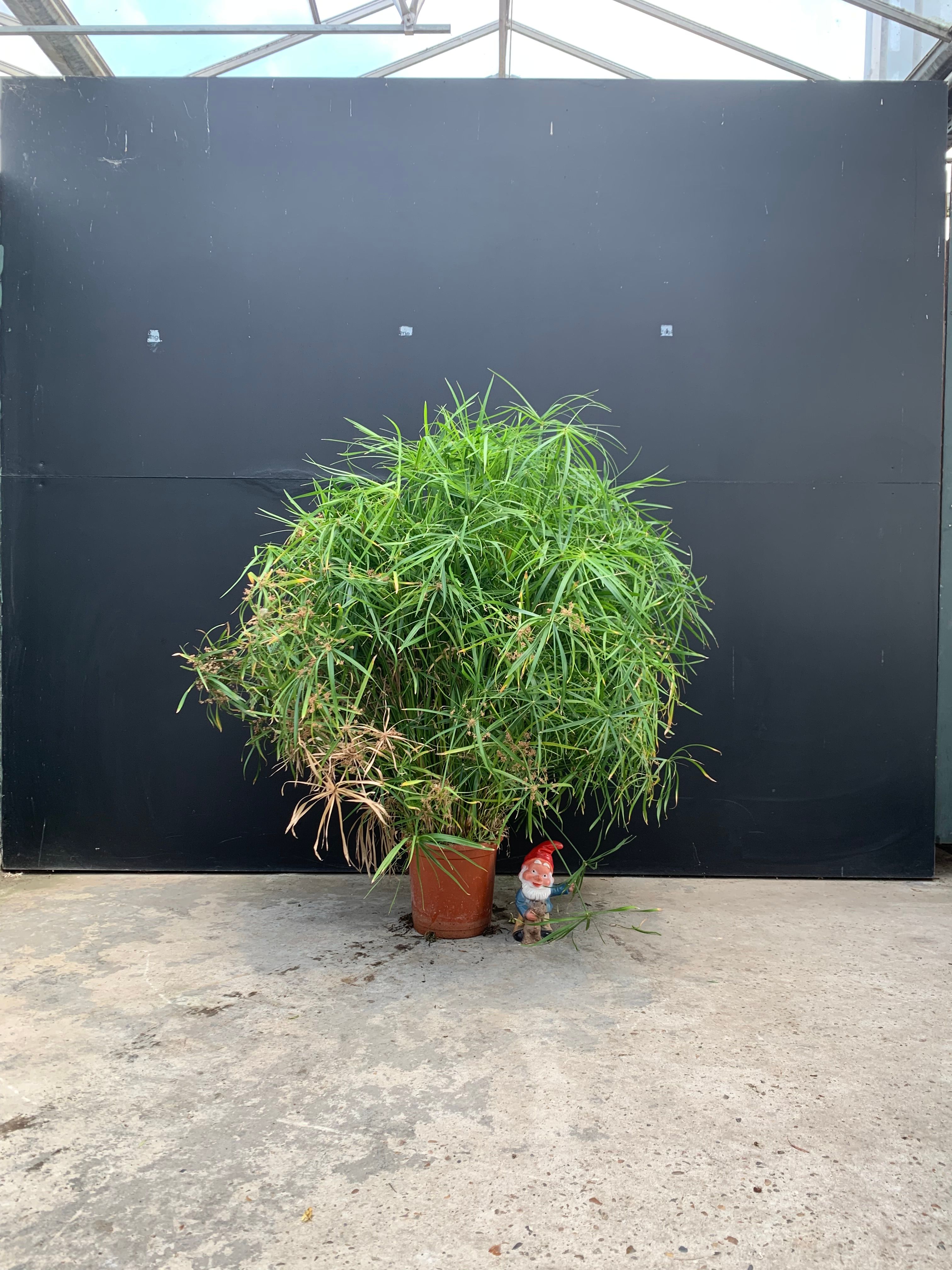 Papyrus alternifolius, ook bekend als de parapluplant of Egyptische papirus, is een opvallende moeras- en oeverplant afkomstig uit moerassige gebieden in Afrika en delen van Azië. Deze plant staat bekend om zijn opvallende parapluachtige bladeren die bovenop lange, rechtopstaande stengels groeien. De bladeren zijn langwerpig en puntig en kunnen tot een meter lang worden, waardoor de plant een majestueuze uitstraling krijgt. In koudere klimaten kan de plant beschadigd raken of zelfs afsterven als hij wordt blootgesteld aan vorst. Als je in een regio woont waar de temperaturen 's winters onder het vriespunt komen, is het vaak het beste om de Papyrus alternifolius als eenjarige plant te beschouwen of als kamerplant te houden.