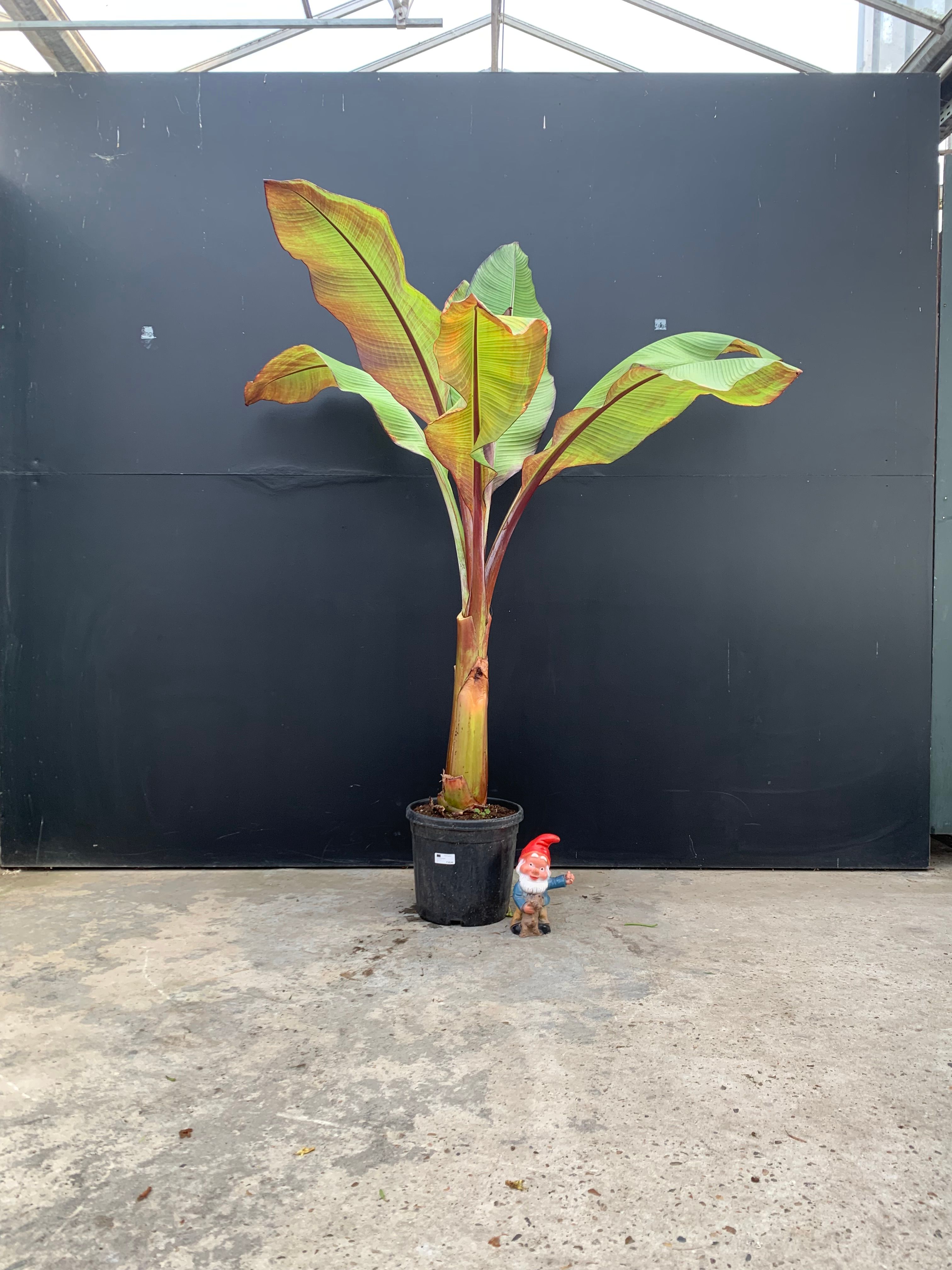 De Ensete 'Maurelli', ook wel bekend als de rode Abessijnse banaan, is een opvallende en decoratieve plant die vaak wordt gebruikt als sierplant in tropische en subtropische tuinen. De plant heeft grote, groene bladeren met een opvallende rode streep langs de bladranden, wat zorgt voor een opvallend contrast. De Ensete 'Maurelli' behoort tot hetzelfde geslacht als de banaan. Het is een relatief grote plant die goed gedijt in vochtige, goed doorlatende grond en een warm klimaat. In de zomermaanden kan de plant mooie paarsrode bloemen produceren, maar het is vooral de sierwaarde van de bladeren die deze plant zo geliefd maakt onder tuiniers. Met de juiste zorg en omstandigheden kan deze plant jarenlang meegaan en blijven groeien, waardoor hij een waardevolle aanvulling kan zijn op elke tuin of binnenruimte.