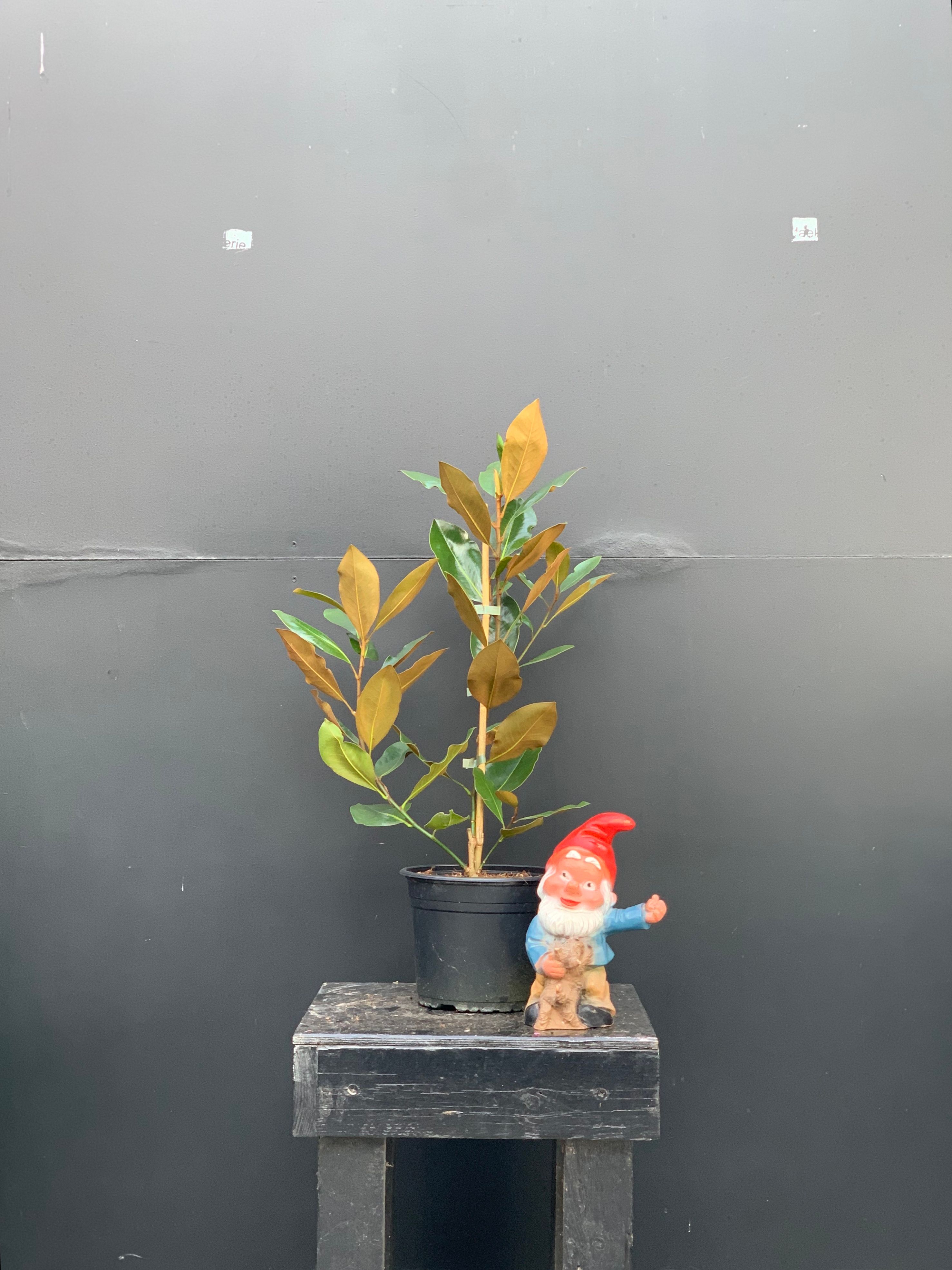 De Magnolia grandiflora is een echte blikvanger in elke tuin. Deze imposante groenblijvende boom draagt het hele jaar door glanzend, donkergroen loof met een roestige onderkant — en in de zomer pronkt hij met reusachtige, romig witte bloemen die een subtiele citrusgeur verspreiden. Kies een zonnige tot licht beschaduwde plek, goed beschut tegen harde wind. De Magnolia grandiflora houdt van een warme, beschutte positie — een zuidgerichte muur is ideaal. Hij is winterhard, maar jonge planten verdienen wat extra bescherming in strenge vorstperioden. Plant hem in goed doorlatende, licht zure tot neutrale grond en houd de wortels vochtig maar niet nat. Mulchen aan de voet houdt het vocht vast en beschermt de wortels. Snoei zo weinig mogelijk — enkel na de bloei om de vorm te bewaren. Bemesting in het voorjaar met een meststof voor zuurminnende planten geeft hem een mooie boost. Kortom: weinig veeleisend, maar wel een absolute showstopper die decennialang van zich laat spreken.