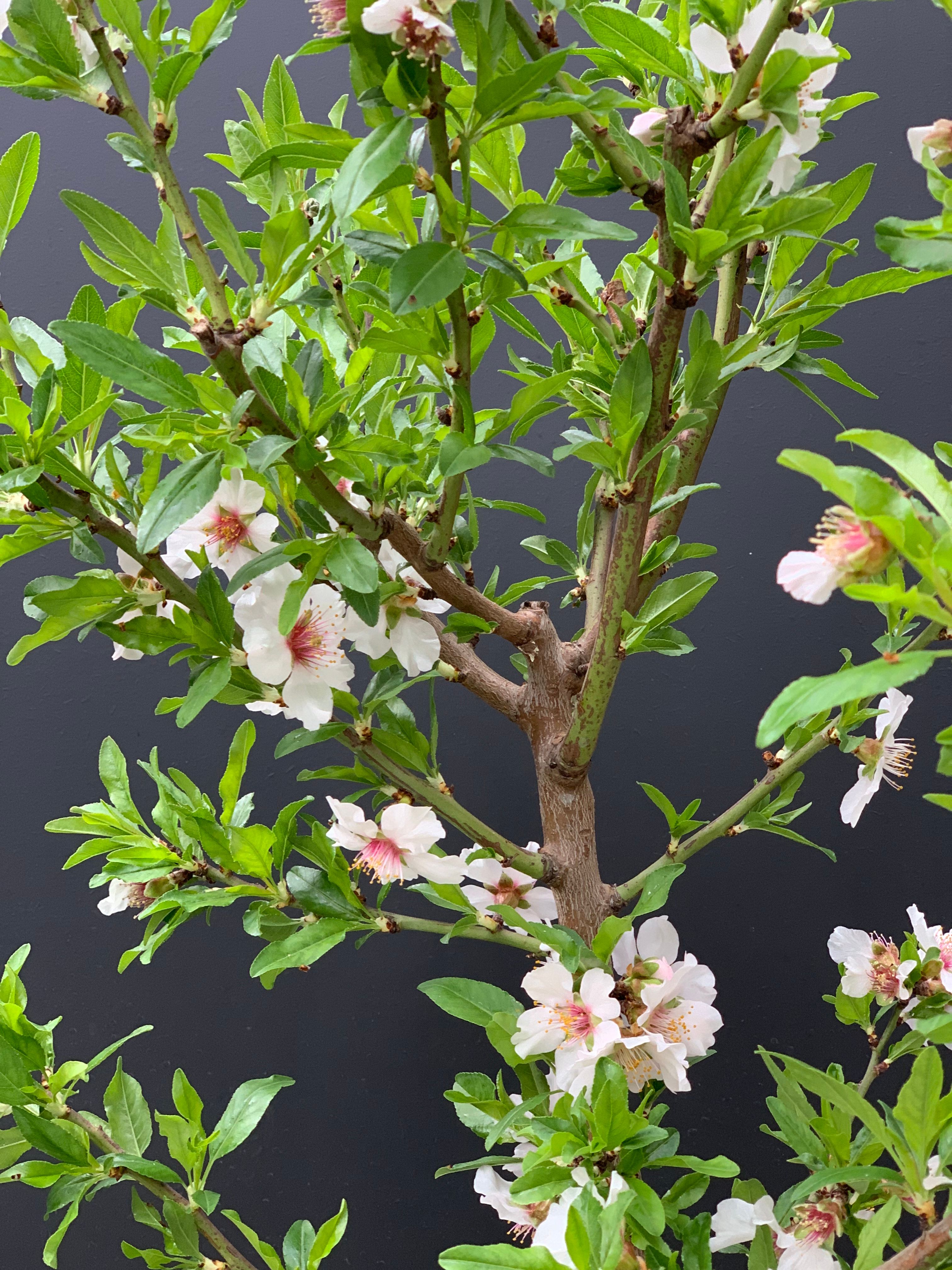 Prunus dulcis, ook bekend als de amandelboom, is een kleine boom die afkomstig is uit de regio's rond de Middellandse Zee en West-Azië. De boom heeft een karakteristieke uitstraling met een dunne stam, brede takken en ovale bladeren. De amandelboom is vooral bekend vanwege de eetbare zaden (amandelen) die hij produceert. Deze zaden worden vaak gebruikt in de keuken, zowel voor zoete als hartige gerechten, en worden ook geperst voor amandelolie. Naast zijn culinaire toepassingen heeft de amandelboom ook medicinale eigenschappen en wordt hij soms gebruikt als een natuurlijk middel tegen koorts en ontstekingen. De amandelboom is relatief gemakkelijk te kweken en heeft een zonnige en goed gedraineerde locatie nodig. De boom kan groeien tot een hoogte van 4 tot 10 meter en bloeit in het voorjaar met roze of witte bloemen. De boom heeft ook een decoratieve waarde en kan een mooie aanvulling zijn op tuinen en landschappen.