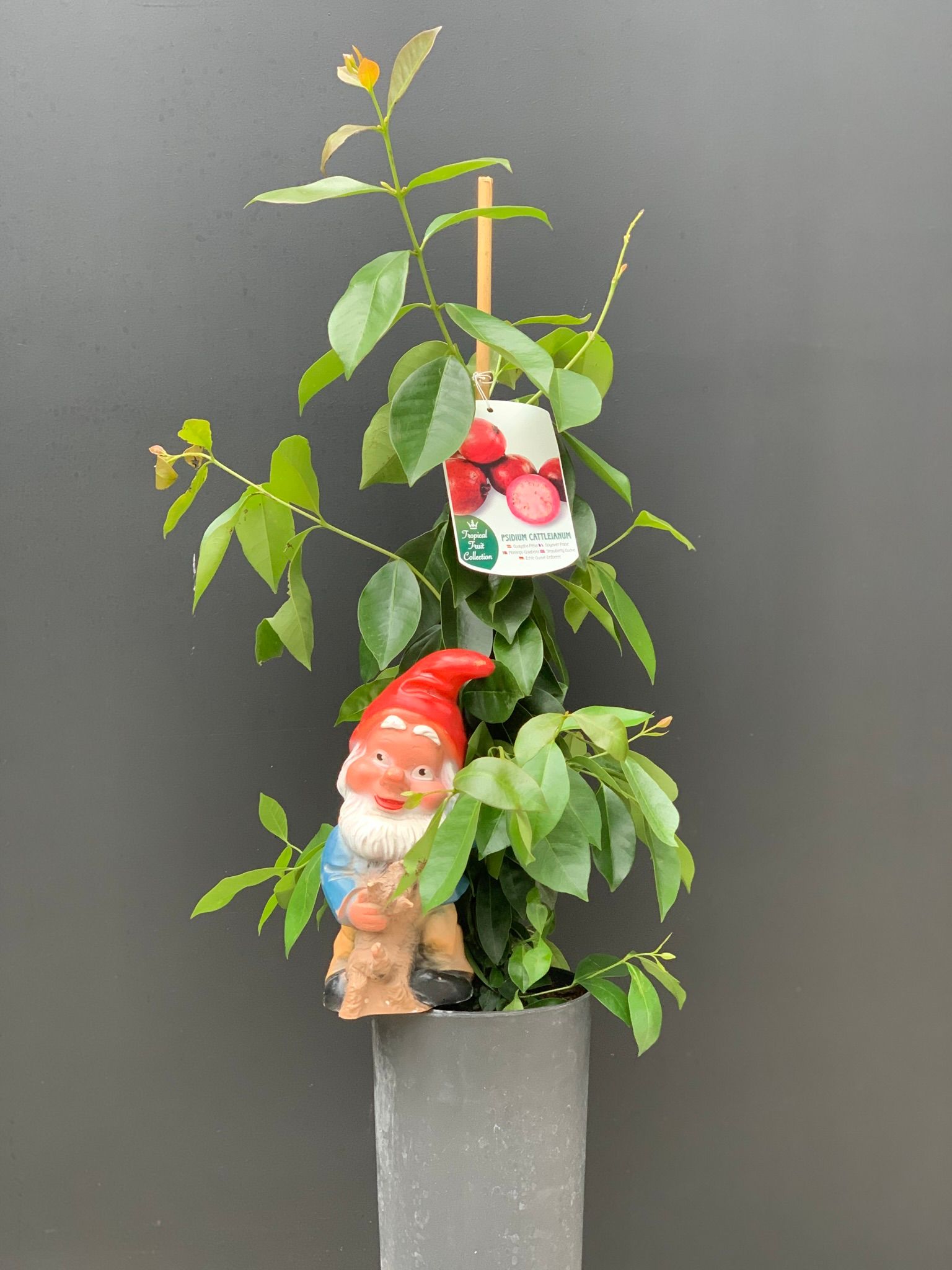 Psidium cattleianum, ook wel bekend als Cattleyguava, is een kleine boom of struik die oorspronkelijk uit Brazilië komt, maar nu in veel tropische regio's over de hele wereld groeit. Het is een groenblijvende plant die tot 5 meter hoog kan worden en ovale, donkergroene bladeren heeft. De vruchten van Psidium cattleianum zijn klein en rond, ongeveer ter grootte van een kers. Ze hebben een zoete en sappige smaak en zijn meestal geel of rood van kleur. De vruchten zijn rijk aan vitamine C, vitamine A en antioxidanten en worden vaak gebruikt in jam, gelei, drankjes en desserts. De plant is relatief eenvoudig te kweken en vereist een goed doorlatende, vochtige grond en veel zonlicht. Het kan worden vermeerderd door middel van zaden, stekken of enten. Het is belangrijk om de plant regelmatig te snoeien om een gezonde groei te bevorderen en om de productie van vruchten te stimuleren.