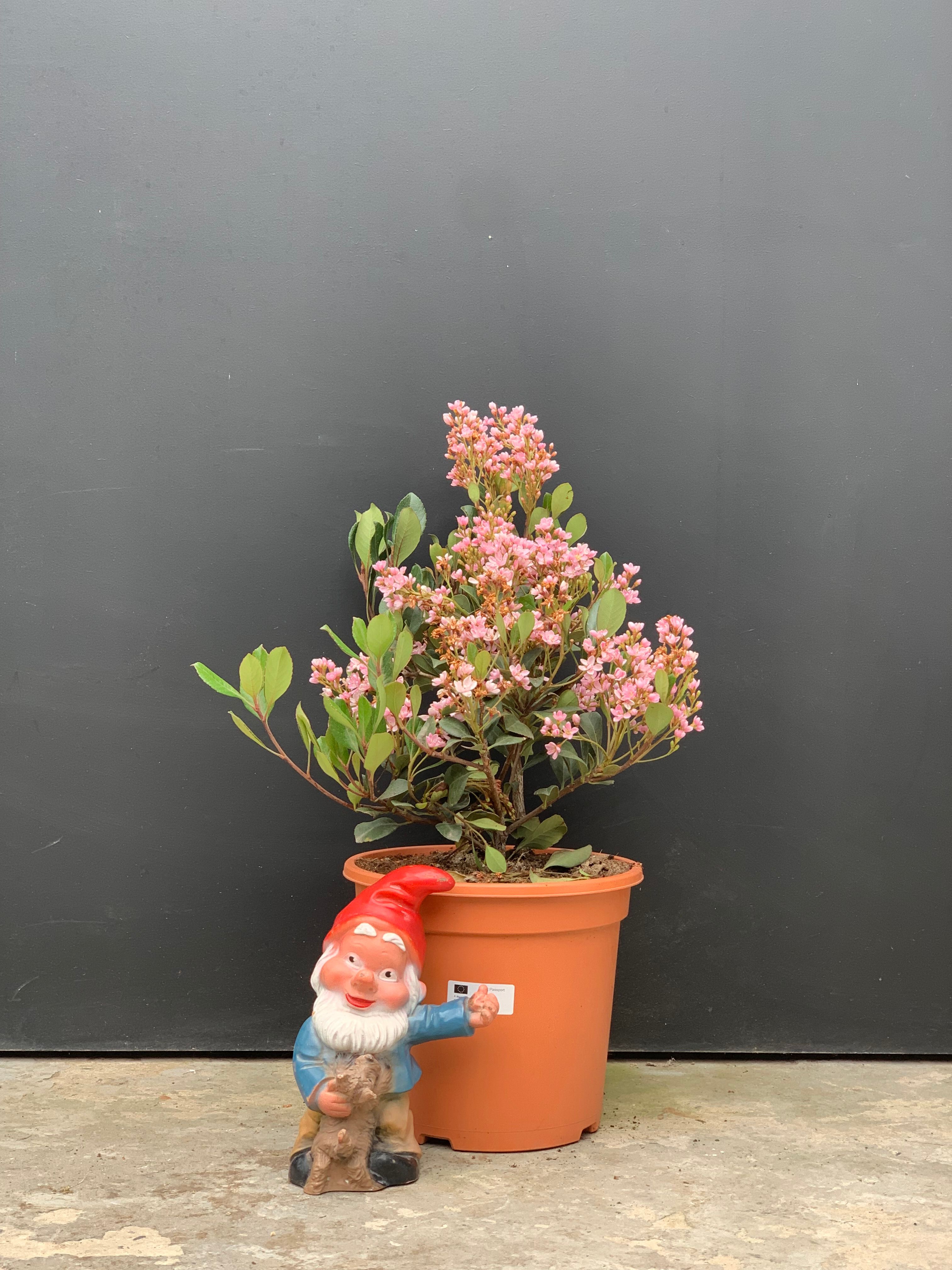 Rhaphiolepis x indica 'Springtime' is een populaire cultivar van de Indiase meidoorn, bekend om zijn overvloedige bloei in het voorjaar. Tussen april en juni produceert deze struik clusters van geurige bloemen in verschillende tinten wit, roze en donkerroze. 'Springtime' gedijt goed in gematigde klimaten en vereist weinig onderhoud, waardoor het een veelzijdige keuze is voor tuinen en landschappen. Met zijn kleurrijke bloemen voegt Rhaphiolepis x indica 'Springtime' een vleugje lentepracht toe aan elke buitenruimte.